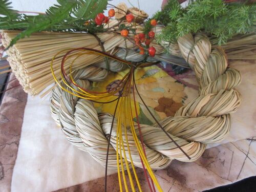 昨年、作った正月用のしめ飾り。 今年は何も作っていない。 久しぶりの晴天。 暖かい。 特別にお正月の準備もしていないが形だけは整えようと 買い物はどっさりしている。